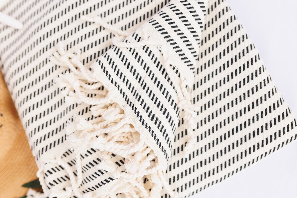 The soft, hand-loomed cotton fabric makes this towel both comfortable and durable. You'll never need to pack a bulky, heavy towel again.